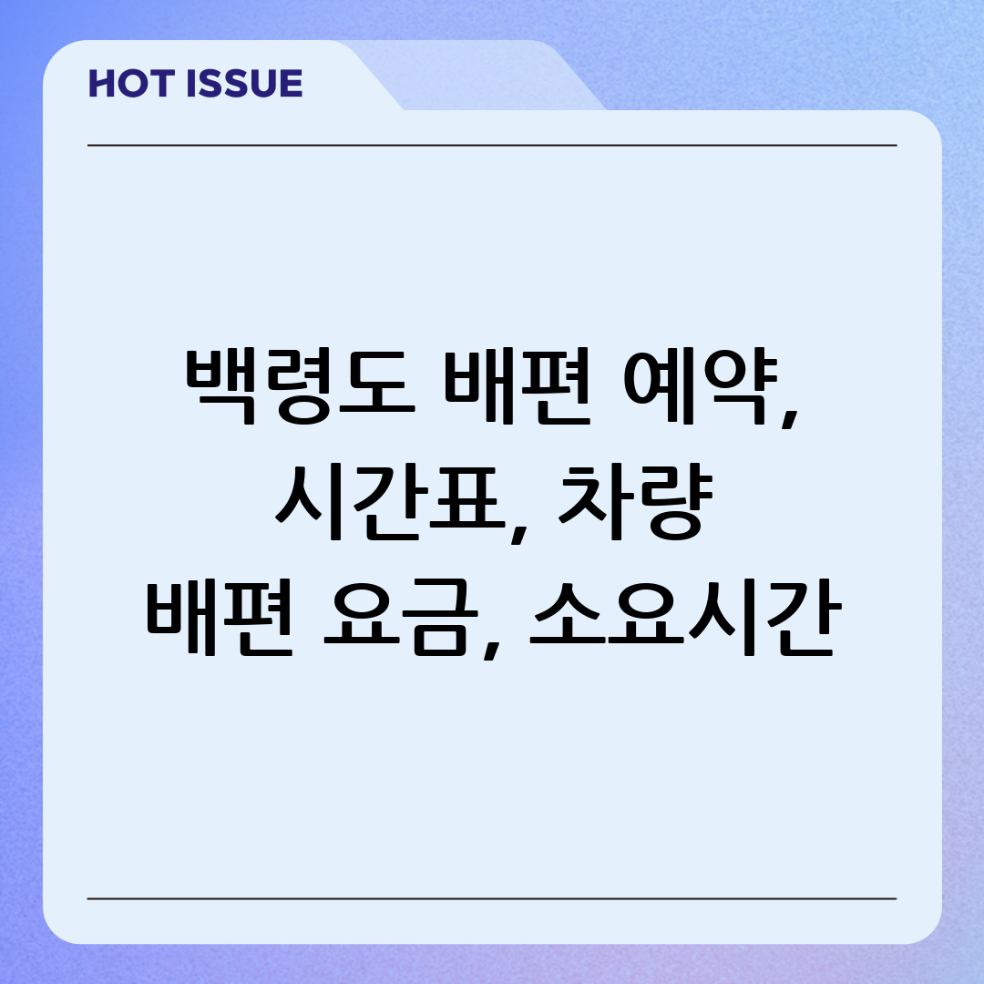 - 차량 선적 예약: 차량을 가지고 백령도에 들어갈 경우, 반드시 차량 선적 예약을 해야 합니다.