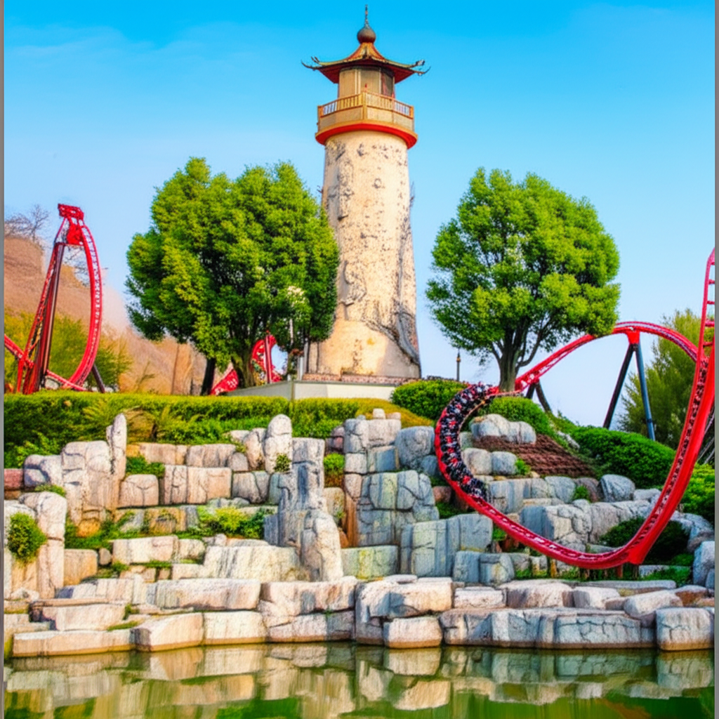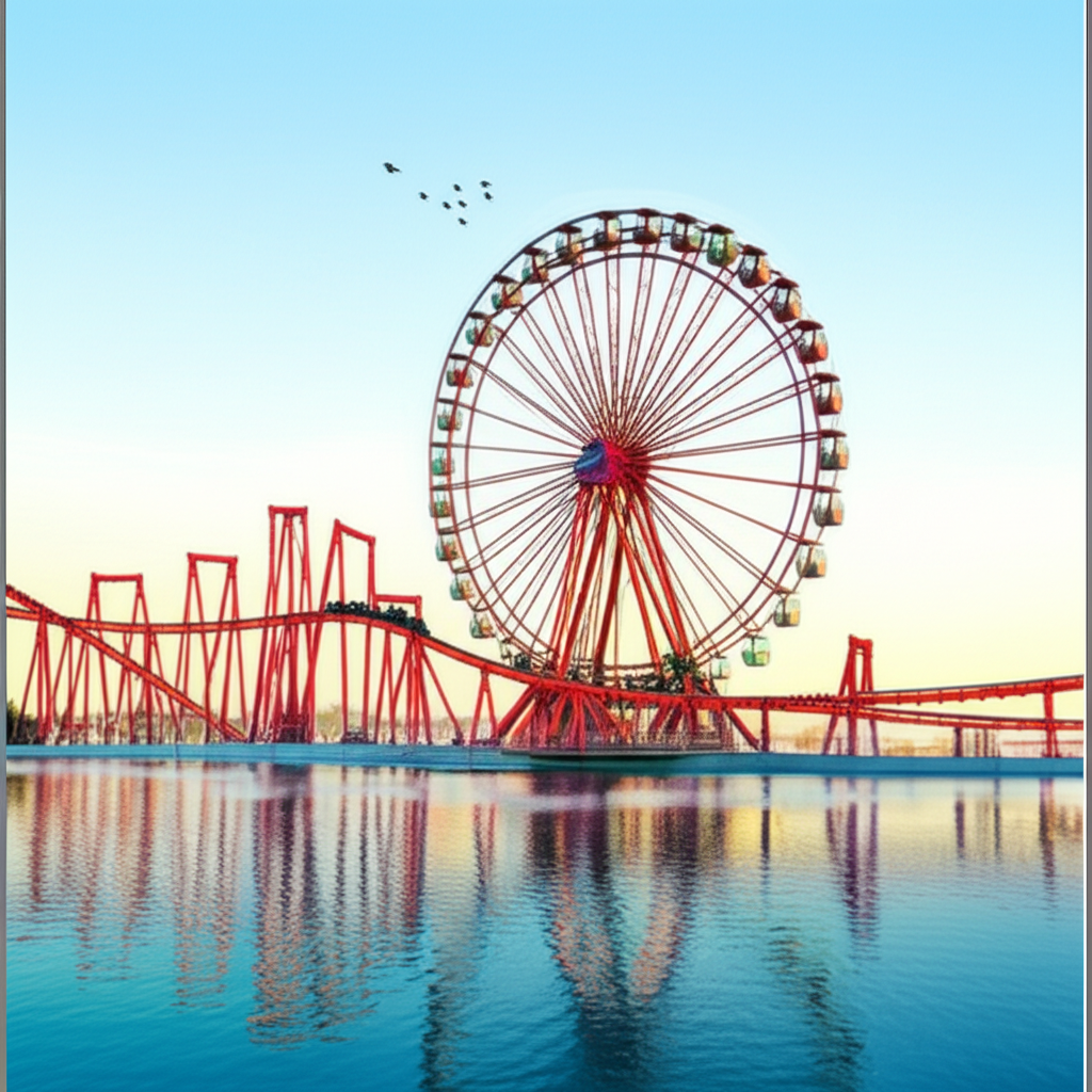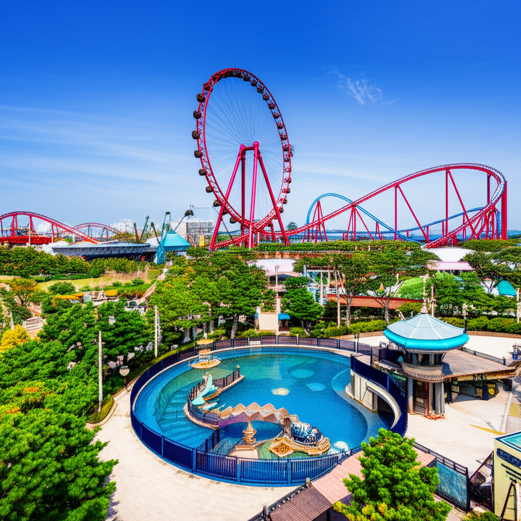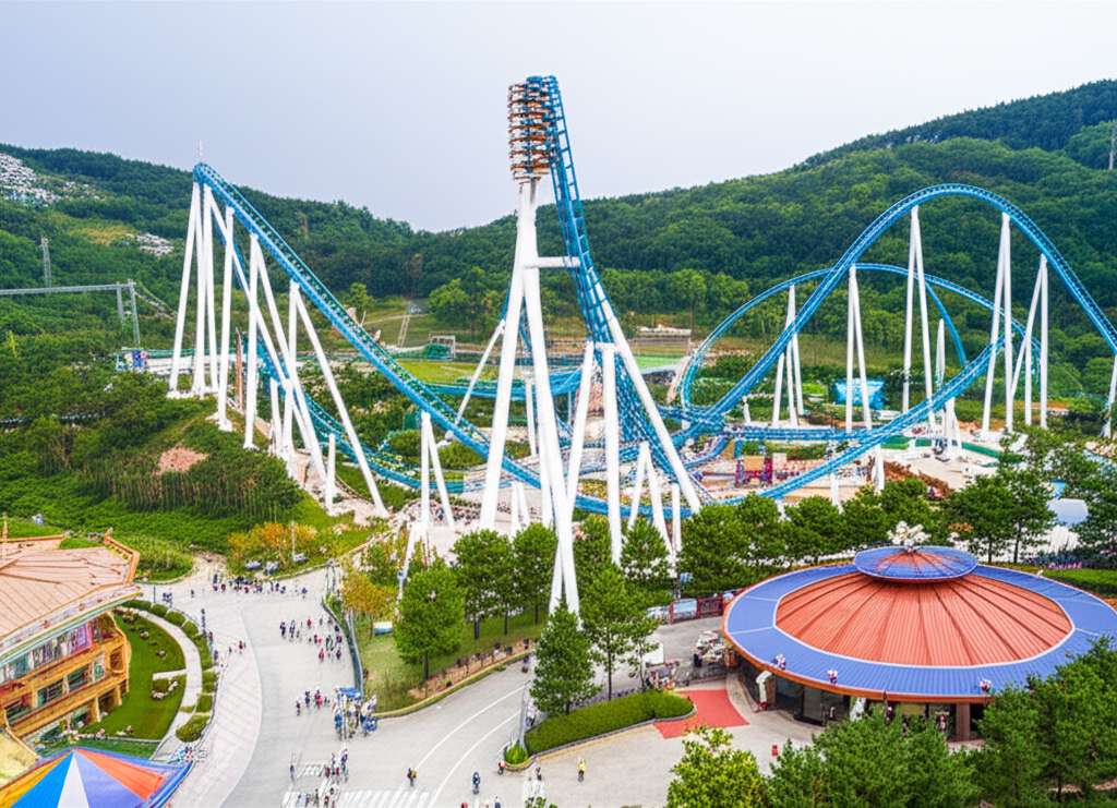 시원한 물보라를 맞으며 즐기는 놀이기구입니다. 높은 곳에서 급강하하며 물속으로 뛰어드는 순간, 스트레스가 확 날아갑니다. 여름에 특히 인기가 많습니다.