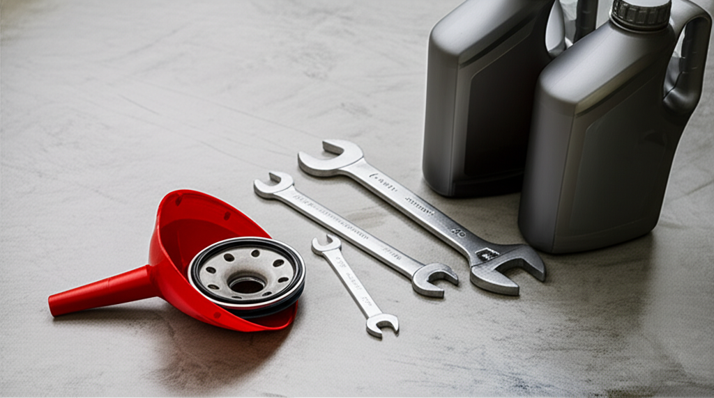 - 준비물: 새 엔진오일, 엔진오일 필터, 오일 필터 렌치, 드레인 플러그 렌치, 깔때기, 폐유 수거 용기, 장갑, 작업복, 안전 안경 등을 준비합니다.